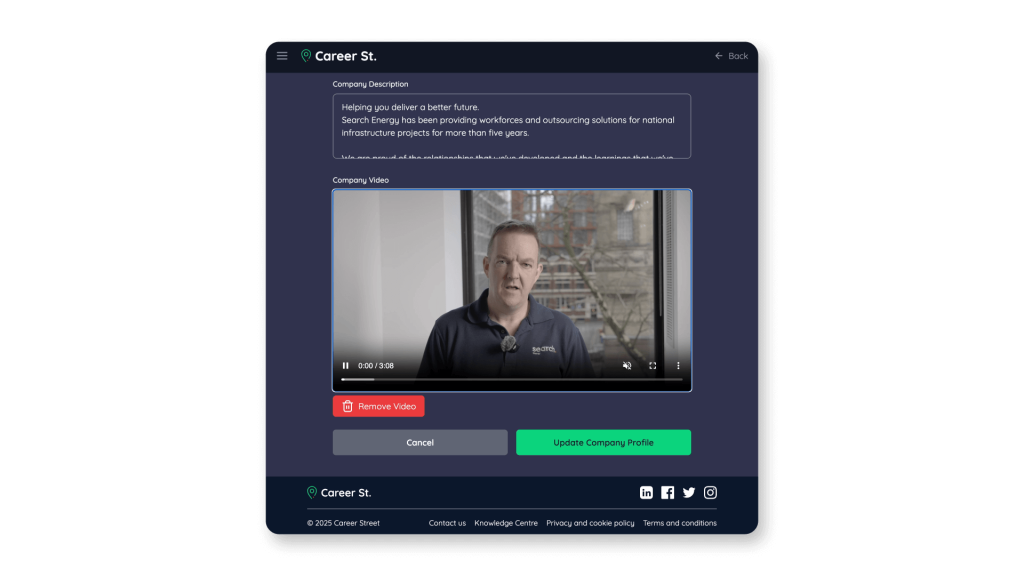 Career Street is a modern recruitment platform that combines video CVs, AI-powered candidate matching, and job videos to help companies hire smarter, faster, and more efficiently.